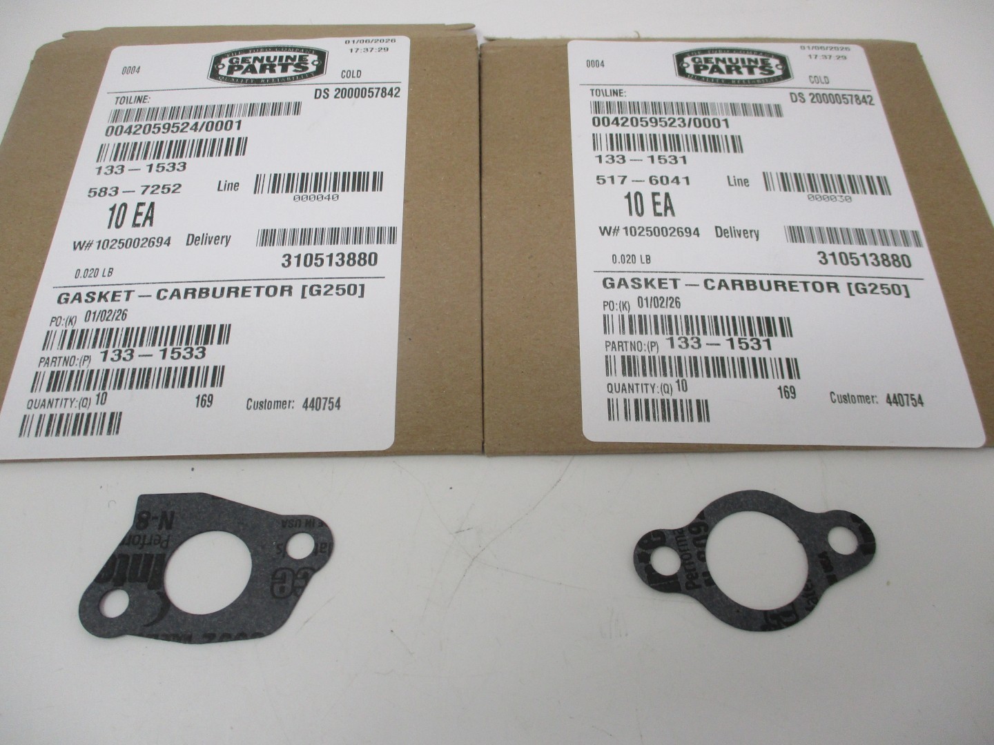 2 Genuine Toro 133-1531 and 133-1533 Carburetor Paper Gaskets