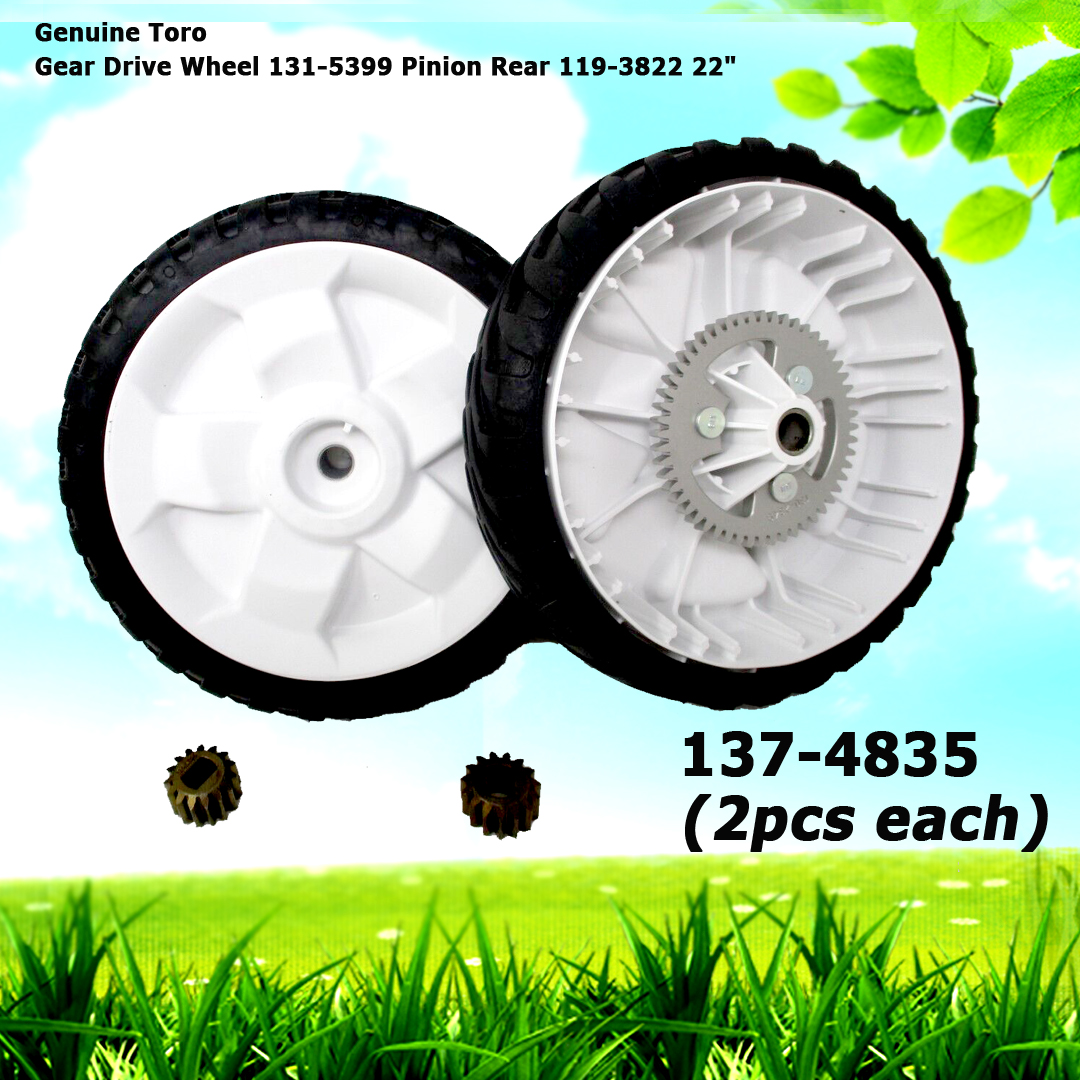 2 Genuine Toro 137-4835 Gear Drive Wheel 131-5399 & Pinion Rear 119-3822 22″ Recycler
