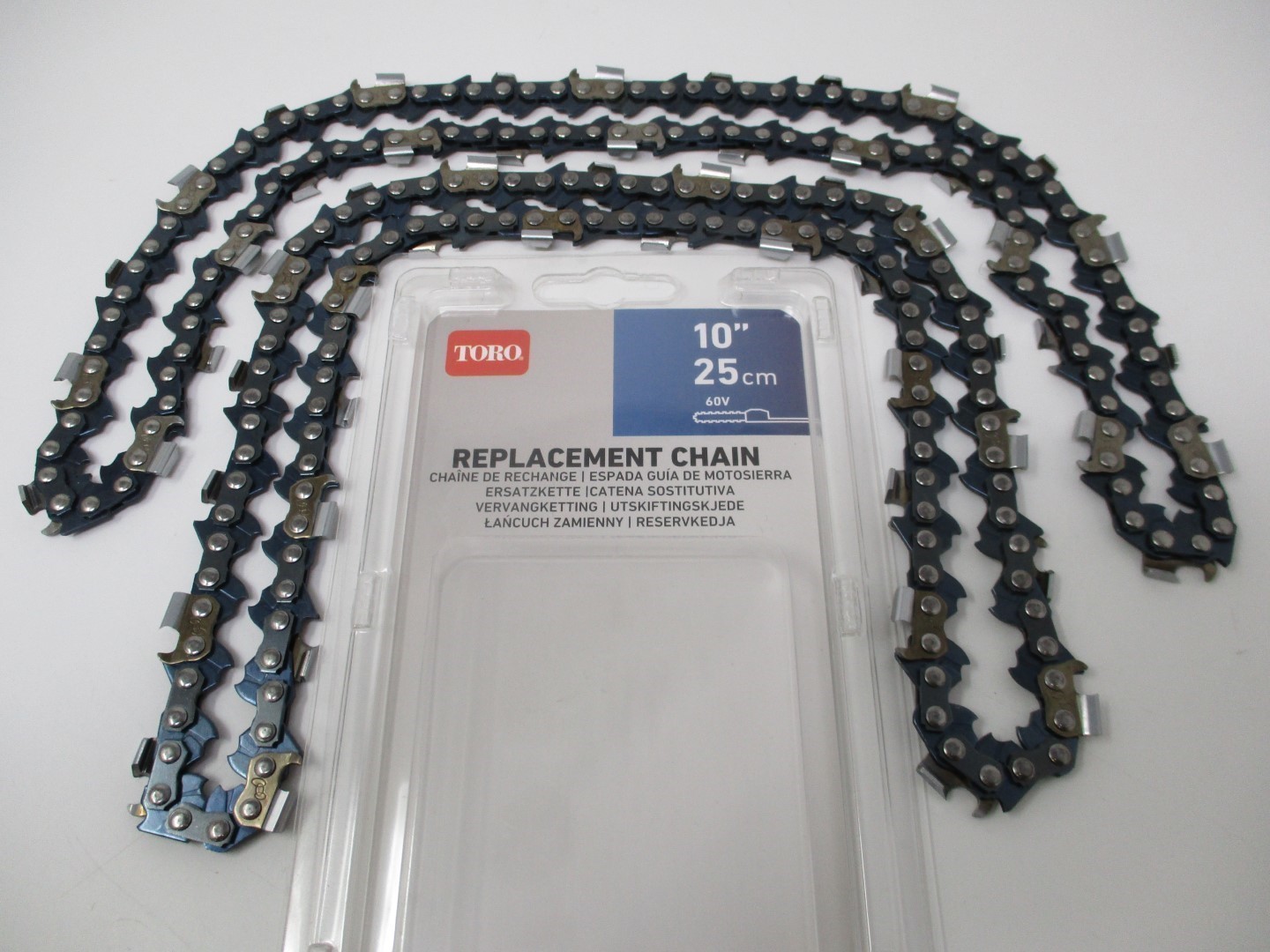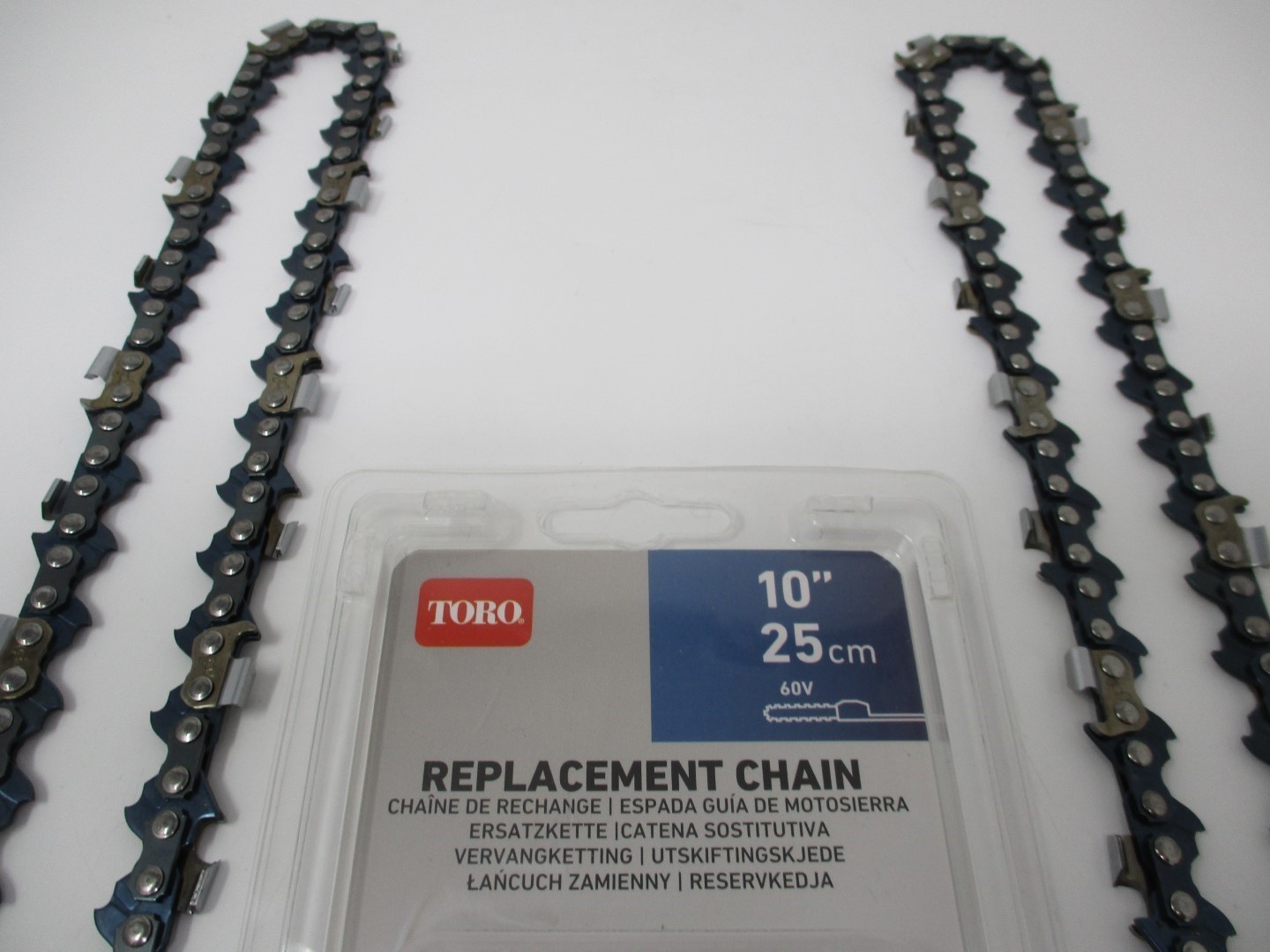 The 10inch pole saw replacement chain fits the Toro Flex Force 60V Max 10inch pole saw 51870 and 51870T.