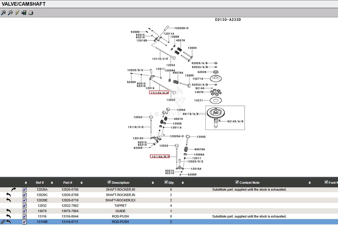 Superseded Part Number 13116-7005 13116-0712 13116-2054