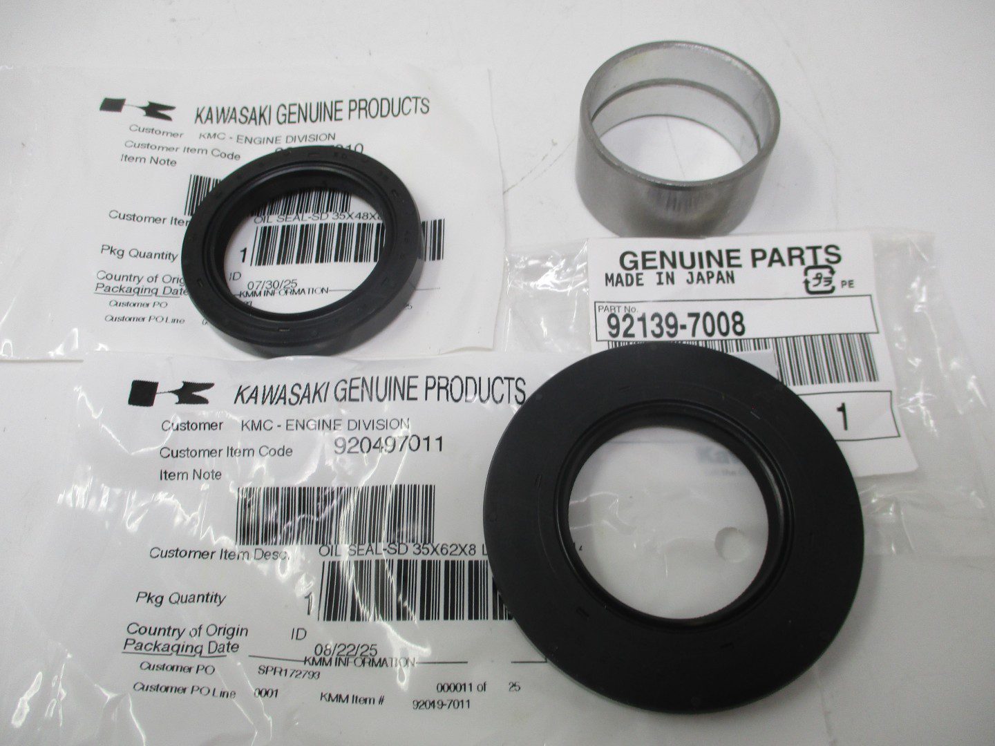 Genuine Kawasaki 92139-7008 Crankshaft Bushing & Oil Seals 92049-7010, 92049-7011