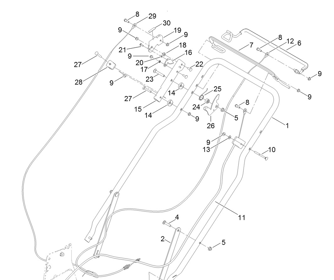 The cable is part of a safety feature that stops the mower’s blade when the control bar is released.